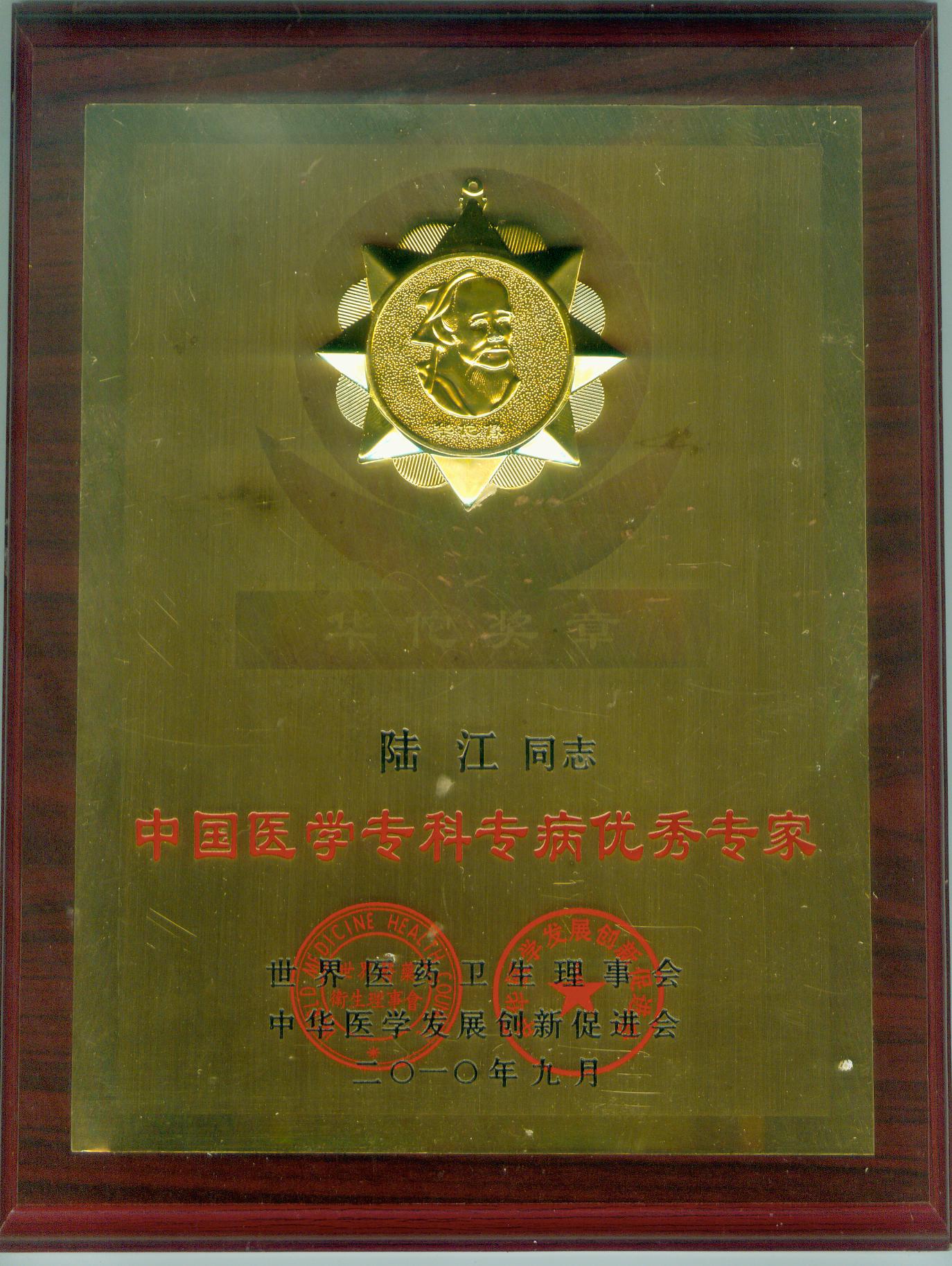陸江獲得中國(guó)醫(yī)學(xué)專科專病優(yōu)秀專家恃別貢獻(xiàn)獎(jiǎng)